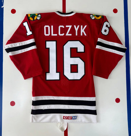 Chicago Blackhawks Eddie Olczyk 1985 Playoff Mesh NHL Hockey Jersey (38/Small)