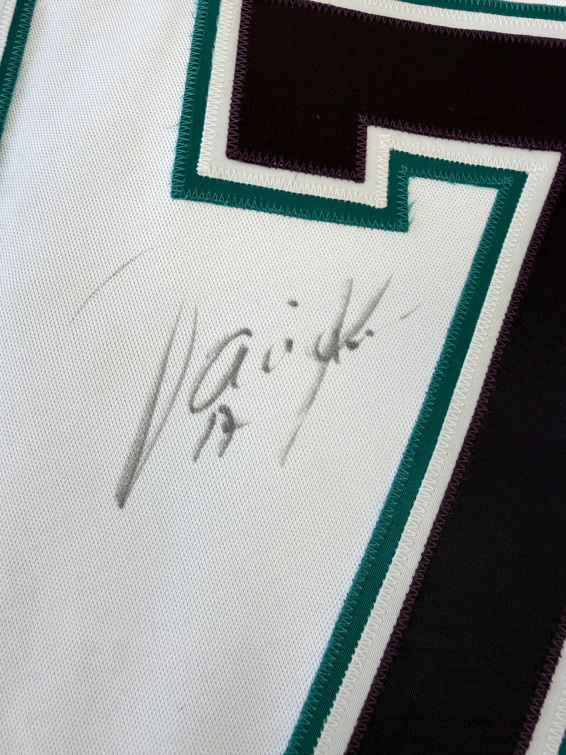 Towards the end of his legendary career, Kurri donned these iconic Mighty Ducks sweaters and helped lead Anaheim to the second round of the playoffs.