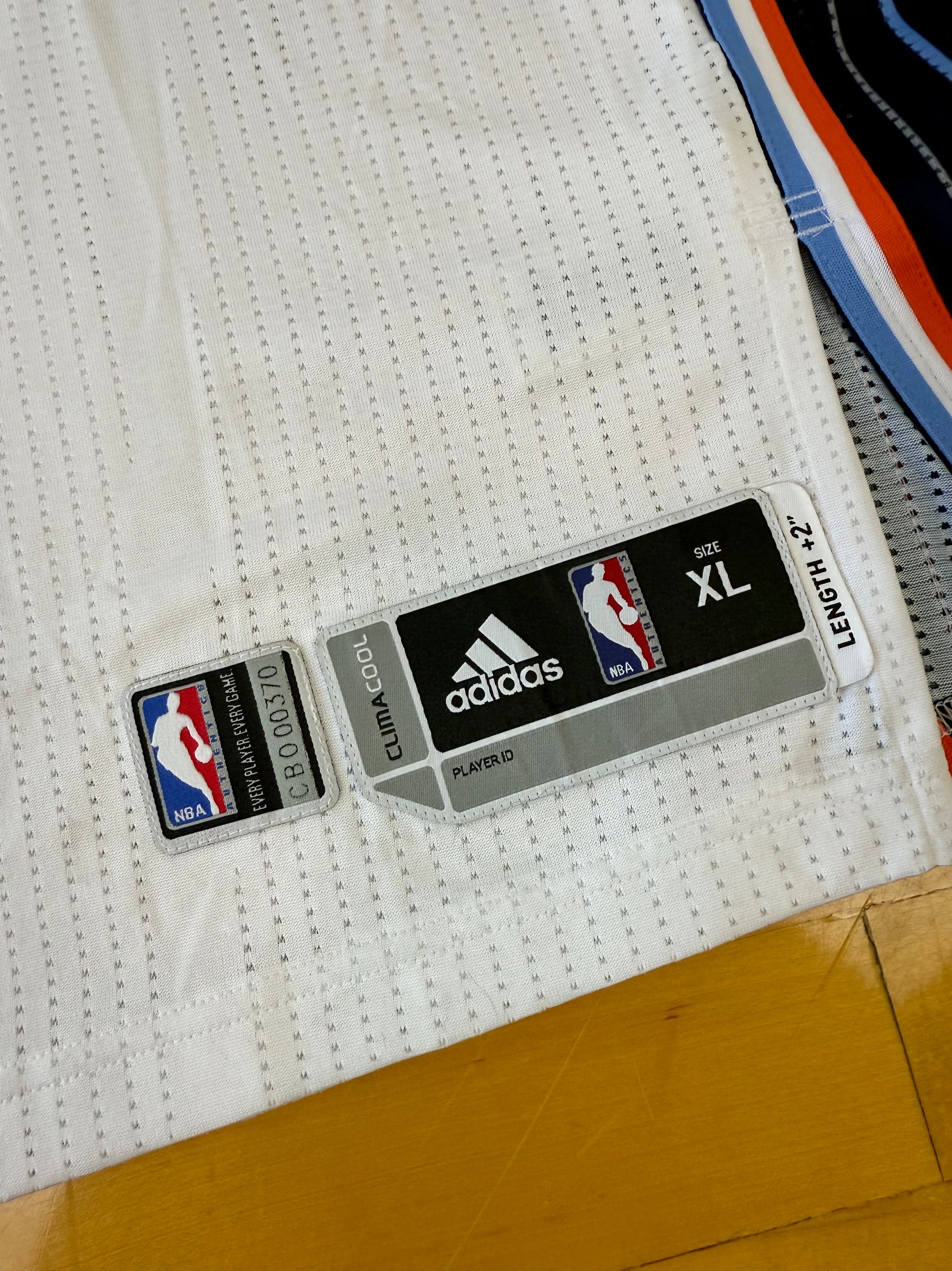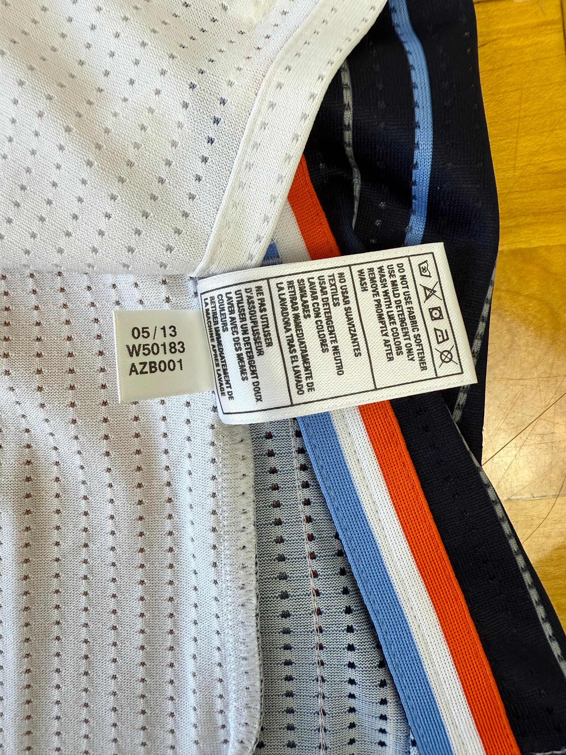 This team issued jersey throws it back to Charlotte’s last season as the Bobcats before becoming the Hornets in 2014-15. The jersey features unique Rev30 era numbers that are made of three layers of stitched twill, embroidery, and special blue mesh material. It’s no wonder the NBA went away from this style as it must’ve been a huge headache for equipment managers to put together!