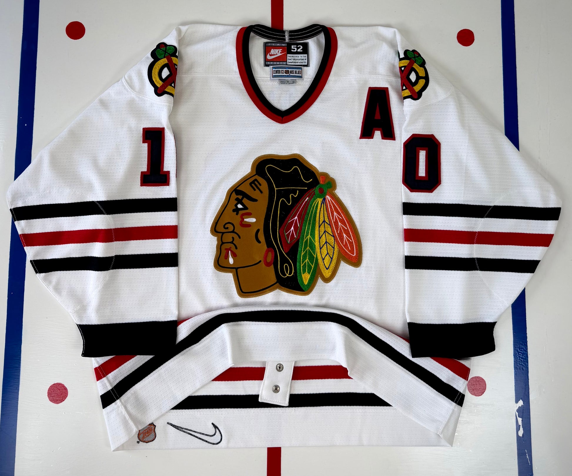 The Blackhawks were one of just a handful of teams to wear Nike branded jerseys in the late 90s. These high quality jerseys are made of highly durable air knit jersey fabric. This iconic Blackhawks sweater includes beautifully chain stitched crest and shoulder patches. Chicago fan favorite Tony Amonte was elected to 5 NHL All-Star Games, all while playing for the Blackhawks.