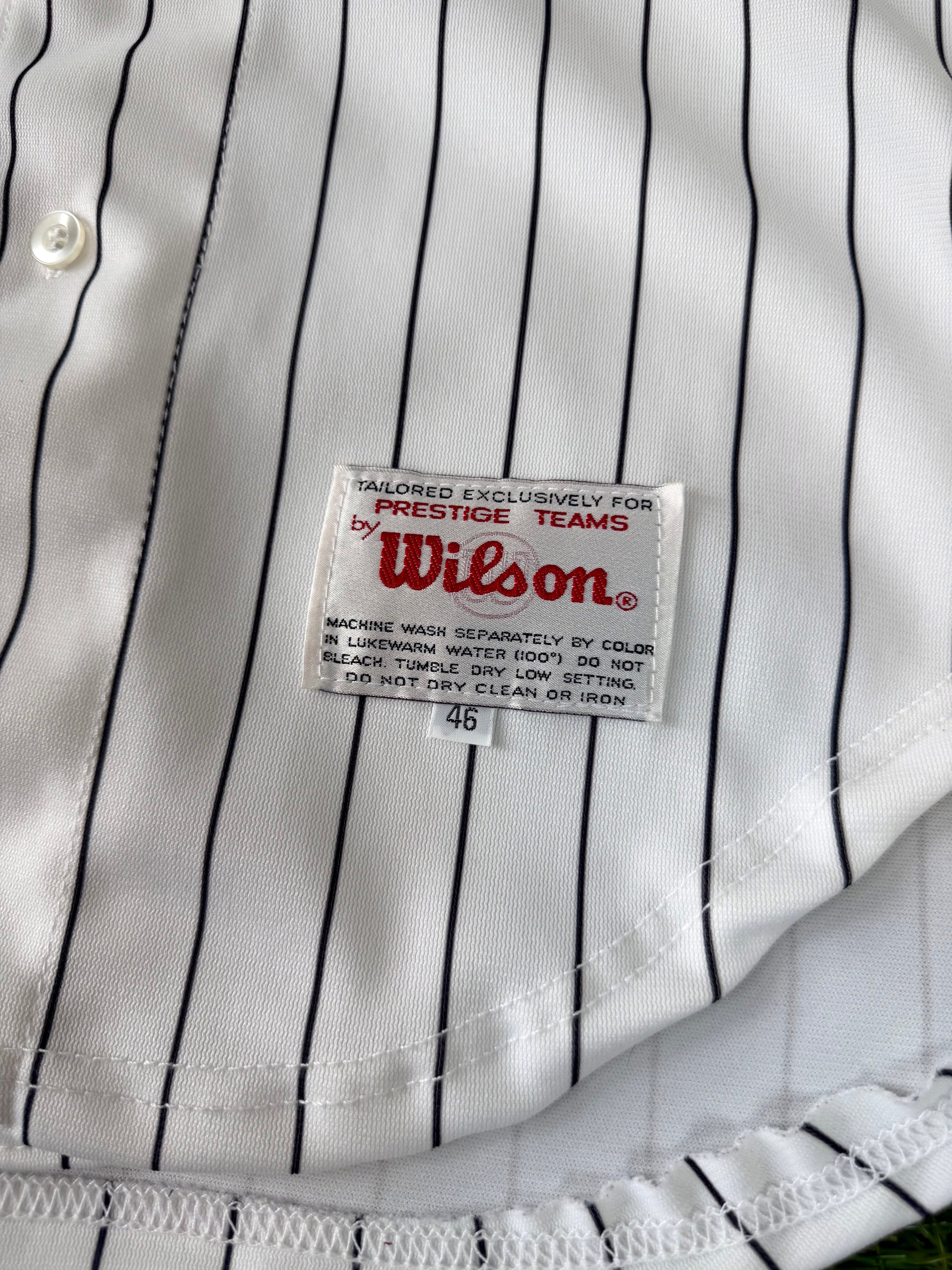 This Wilson authentic White Sox jersey features a White Sox 95th Anniversary patch on the right sleeve and a Comiskey Park patch on the left sleeve as the Sox wore during the 1995 season. Wilson manufactured on-field jerseys for the Sox in the 90s, but Russell Athletic had the exclusive rights to sell White Sox jerseys in retail, so the only Wilson model jerseys in existence were team issued! This rare piece features Robin Ventura’s number 23. Ventura was a fan favorite in Chicago, winning four gold gloves at third base during his decade long stint in Chicago.