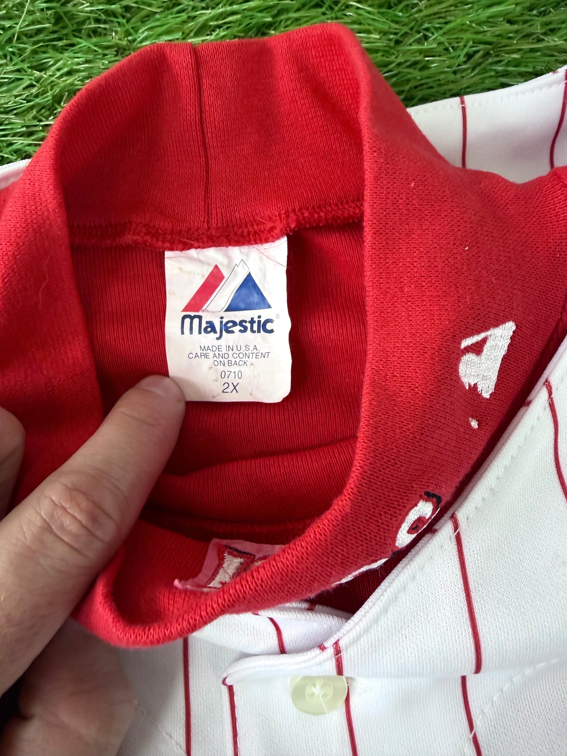 Team captain Barry Larkin was the face of the franchise for a decade plus in the 90s and early 2000s (although Ken Griffey Jr. definitely stole some of the spotlight when coming to Cincinnati in 2000). This jersey throws it back to the tail end of the 2001 season after the 9/11 terror attacks when all MLB teams wore American flag patches on the back of their jerseys over the MLB batterman logo. This one in complete with both the original long sleeved undershirt as Larkin wore though the 90s and 2000s as well as his captain’s “C” in Reds stylized font above the front numbers.