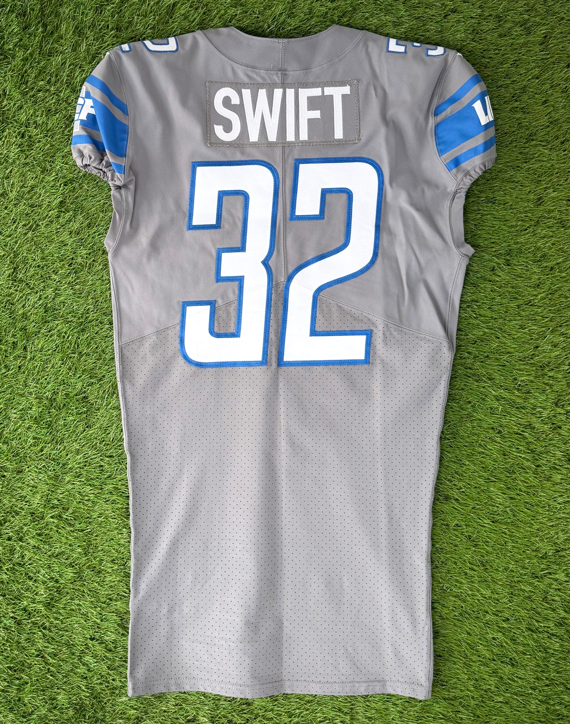 Detroit Lions D’Andre Swift 2021 Game Issued Gray Alternate NFL Football Jersey
