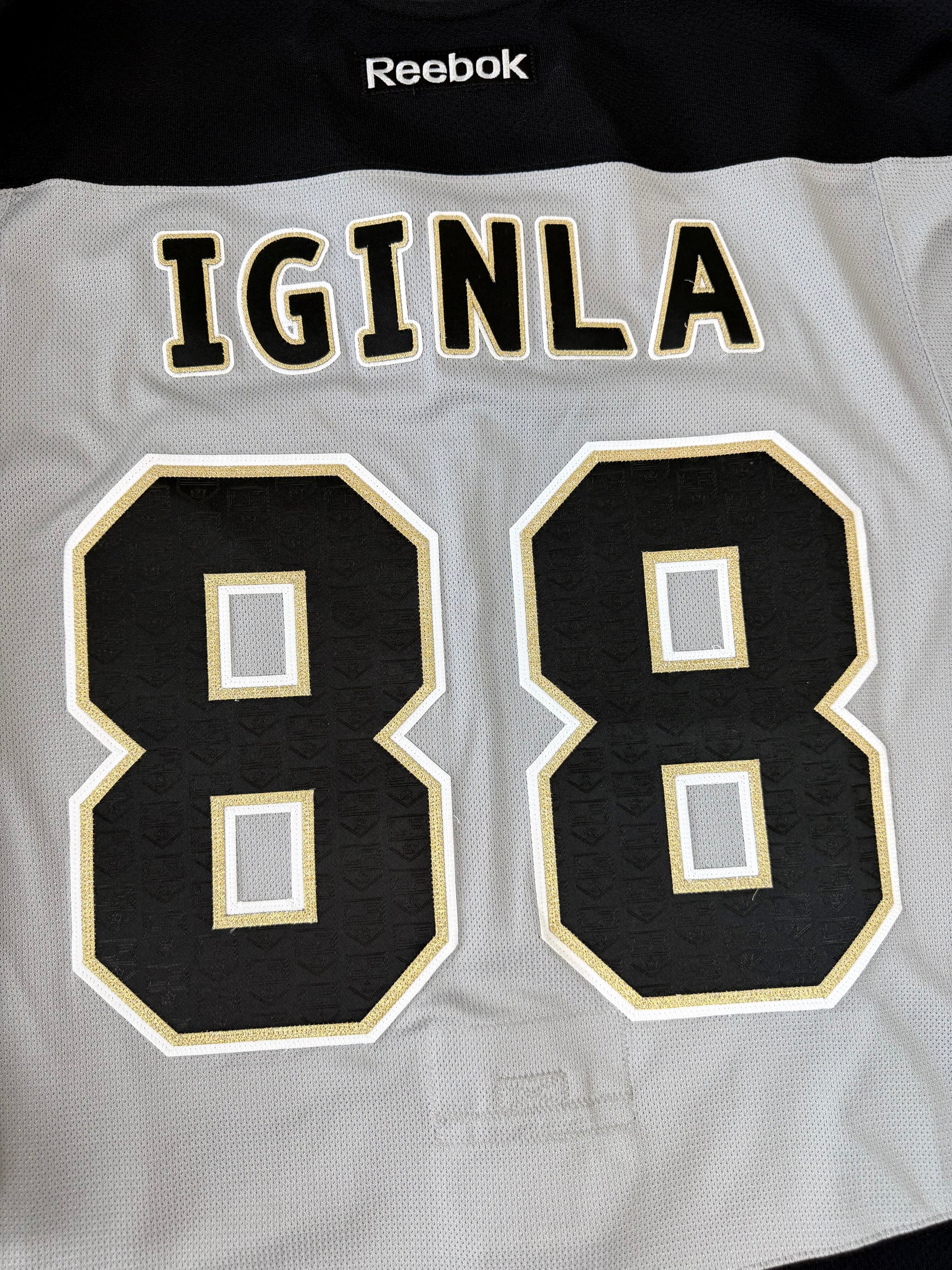 Jarome Iginla played just 19 games for the Kings at the after being traded from the Avs at the trade deadline in 2017. These were the last 19 games of Iggy’s career, and he only wore this alternate jersey style a few times. The combination of all of these patches and details was worn for just a single game on April 8th, 2017.