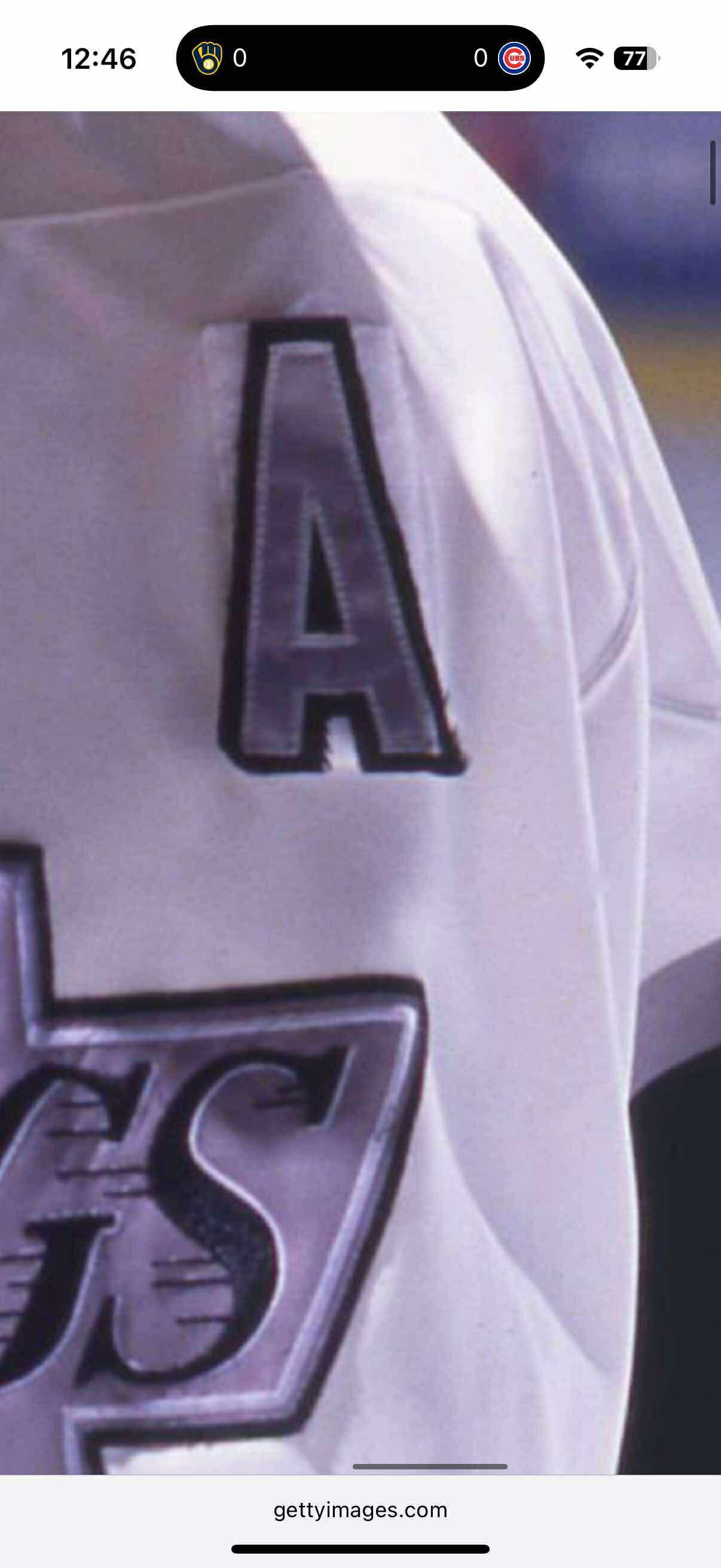 The attention to detail on this gem is incredible. The A and C along with the Velcro are based on the actual game worn 1988-89 Gretzky jersey down to the font, stitching, material, and exact dimensions. Before becoming the permanent captain of the LA Kings, Gretzky switched from nothing, to A, to C, over the course of the 1988-89 season, with Velcro on his jersey to make swapping out letters easy. This one comes with both the A and C so you can wear the jersey however you’d like, and all three options are accurate to what Gretzky actually wore on the ice at some point.