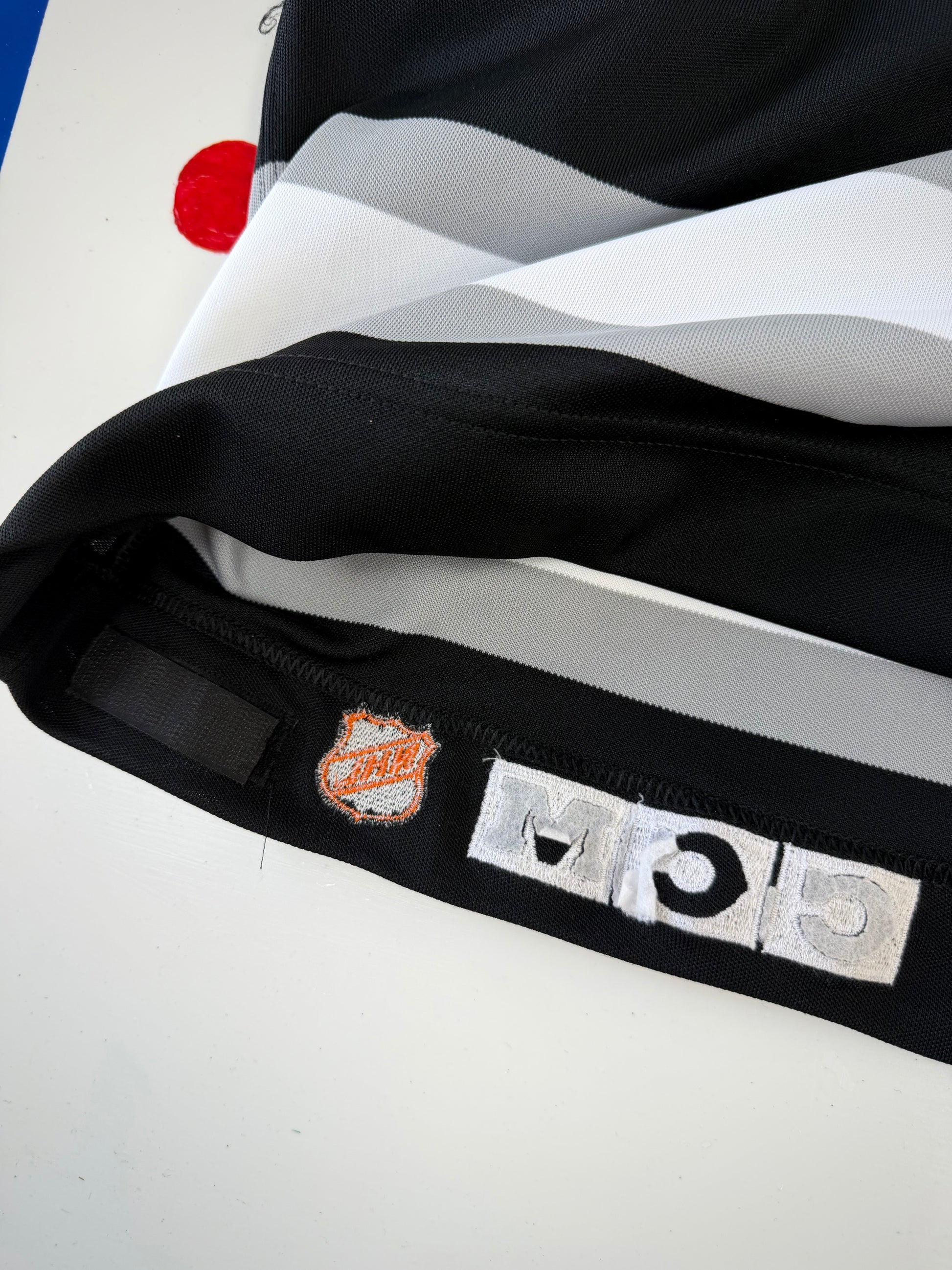 This jersey features some awesome details that set it apart from your typical Gretzky authentic. First is the double CCM tag on the back of the jersey that was unique to Wayne Gretzky jerseys. Most jersey manufacturers put their logo on the bottom right hem. However, Gretzky tucked the right side of his jersey into his pants, covering up the hem tag, so after being traded by the Oilers, every jersey that Gretzky wore had a double tagged hem, ensuring the manufacturer logo would be visible on the jersey of the best hockey player in the world.