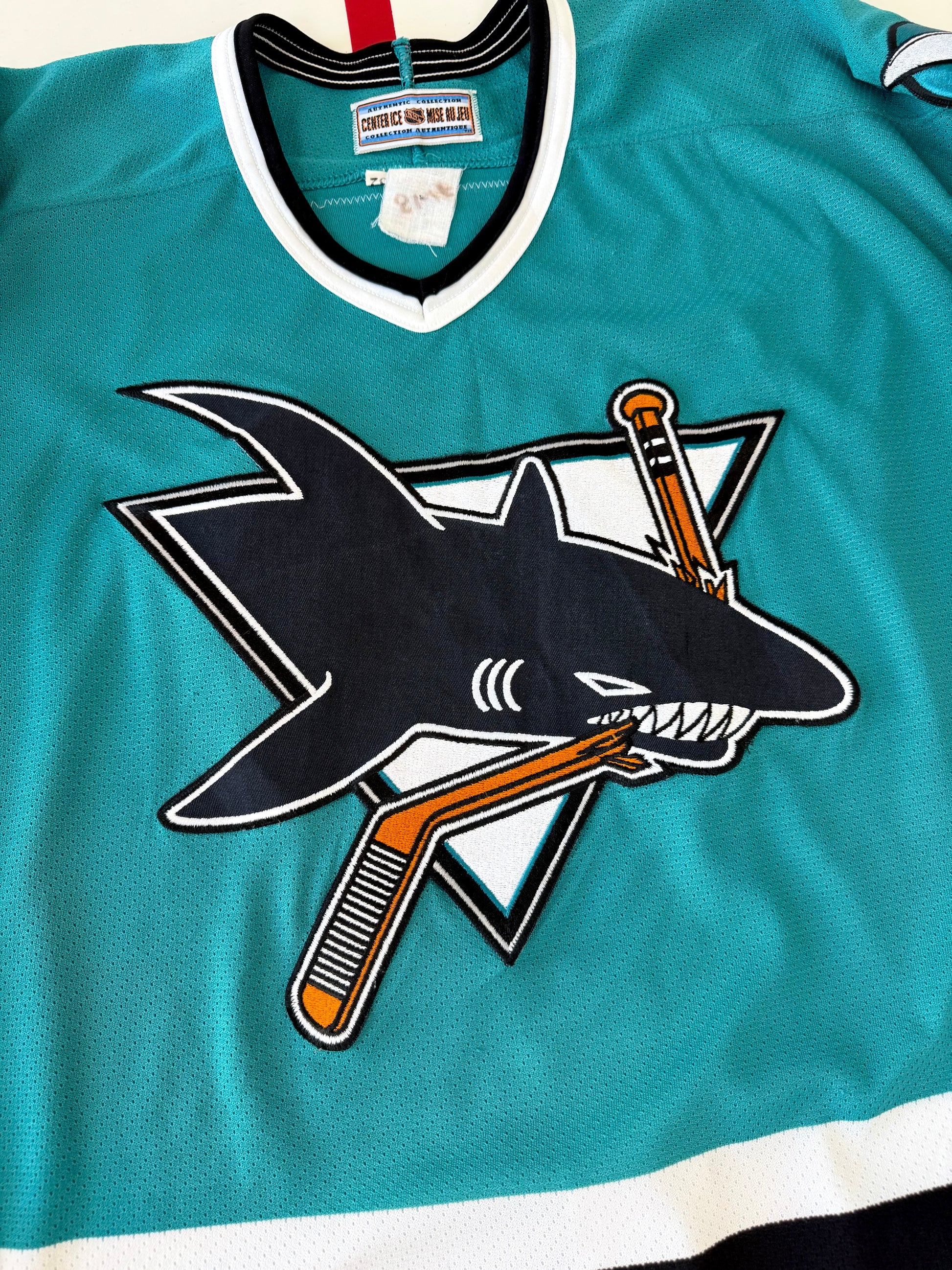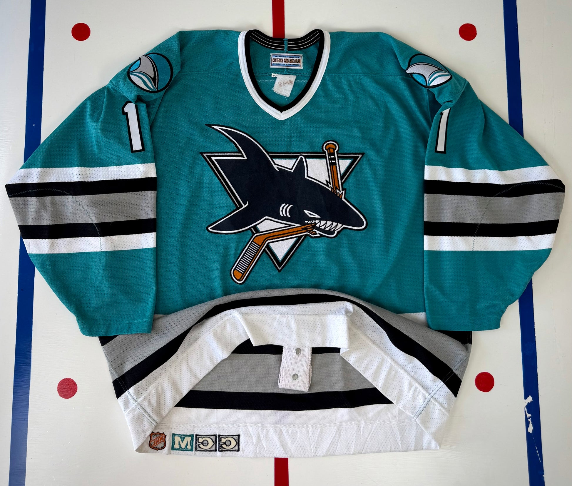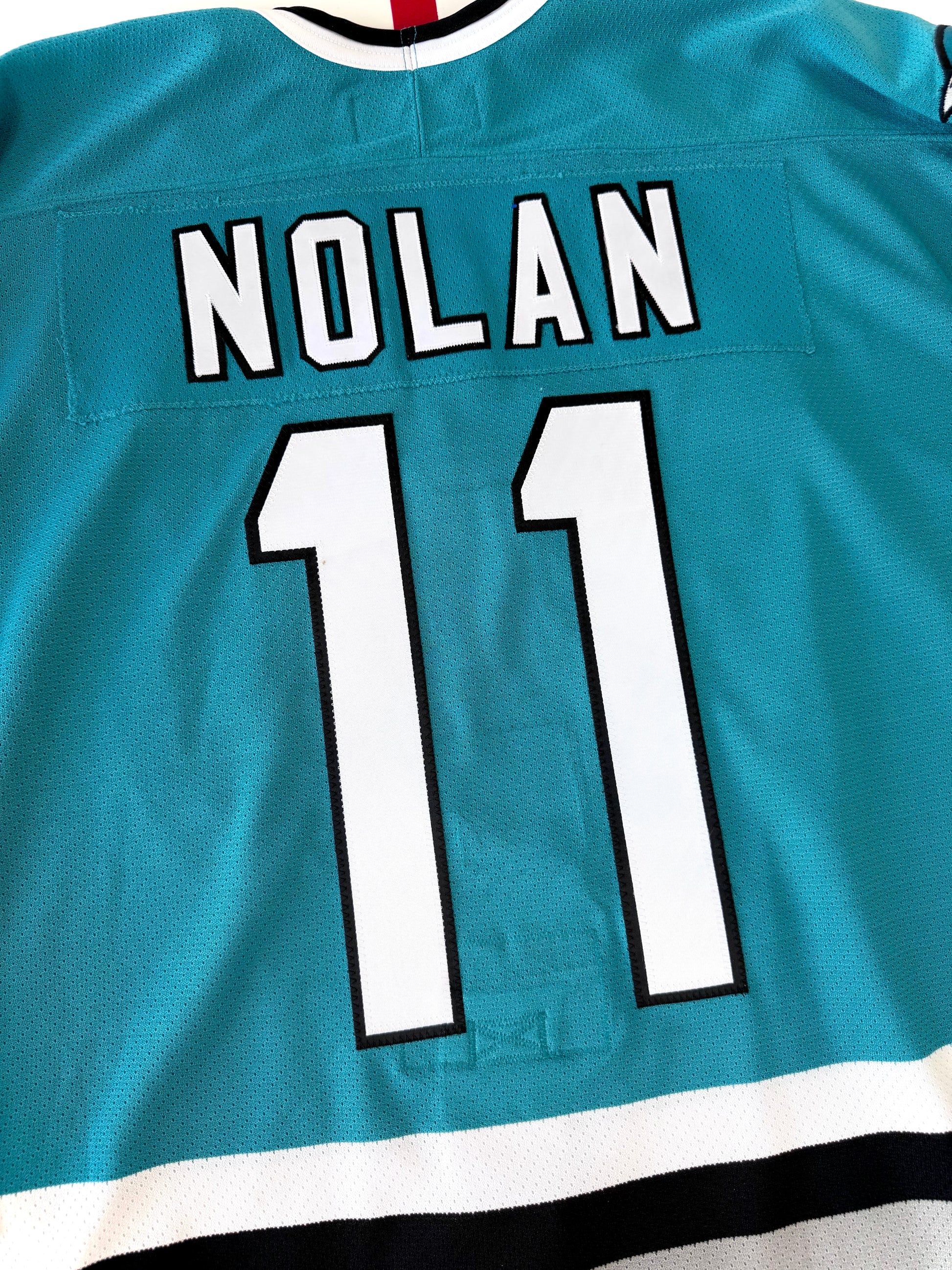 This mid-90s Sharks jersey is done up to Owen Nolan, who was arguably the face of the Sharks throughout the mid-90s to early-2000s, and created some iconic moments in the early days of the franchise.