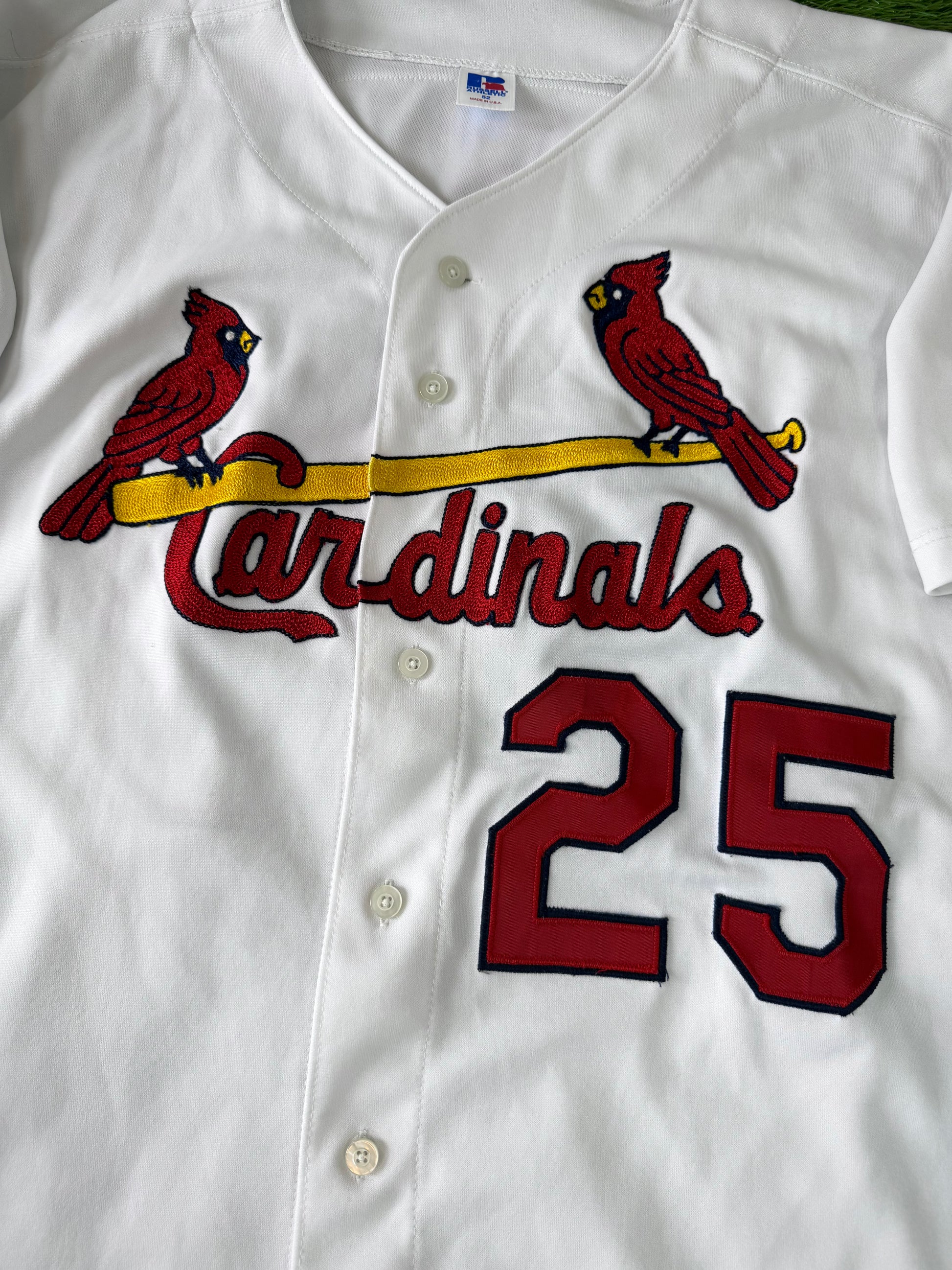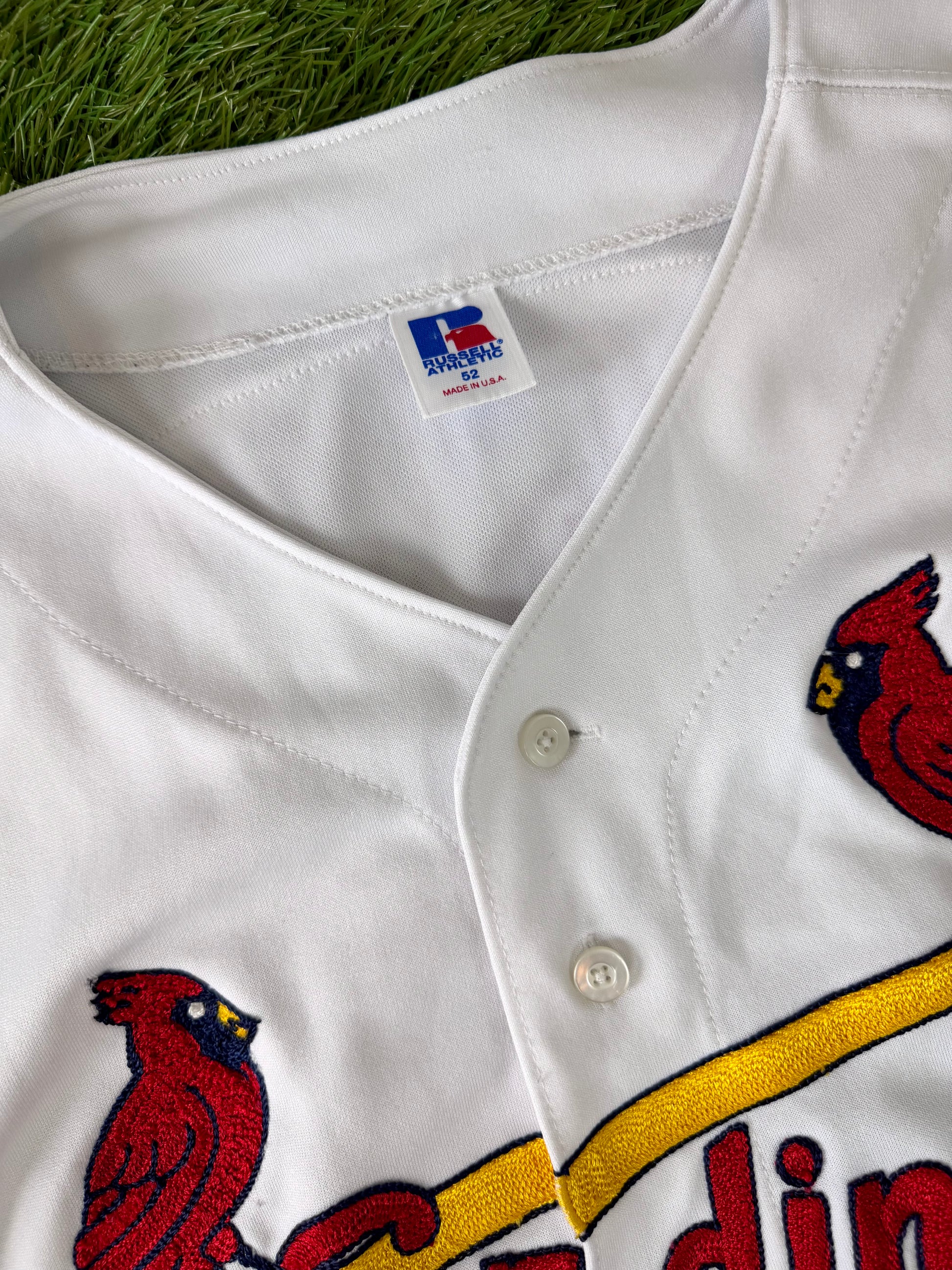 This iconic St. Louis Cardinals jersey features a beautifully chain stitched logo and fully stitched name and numbers.