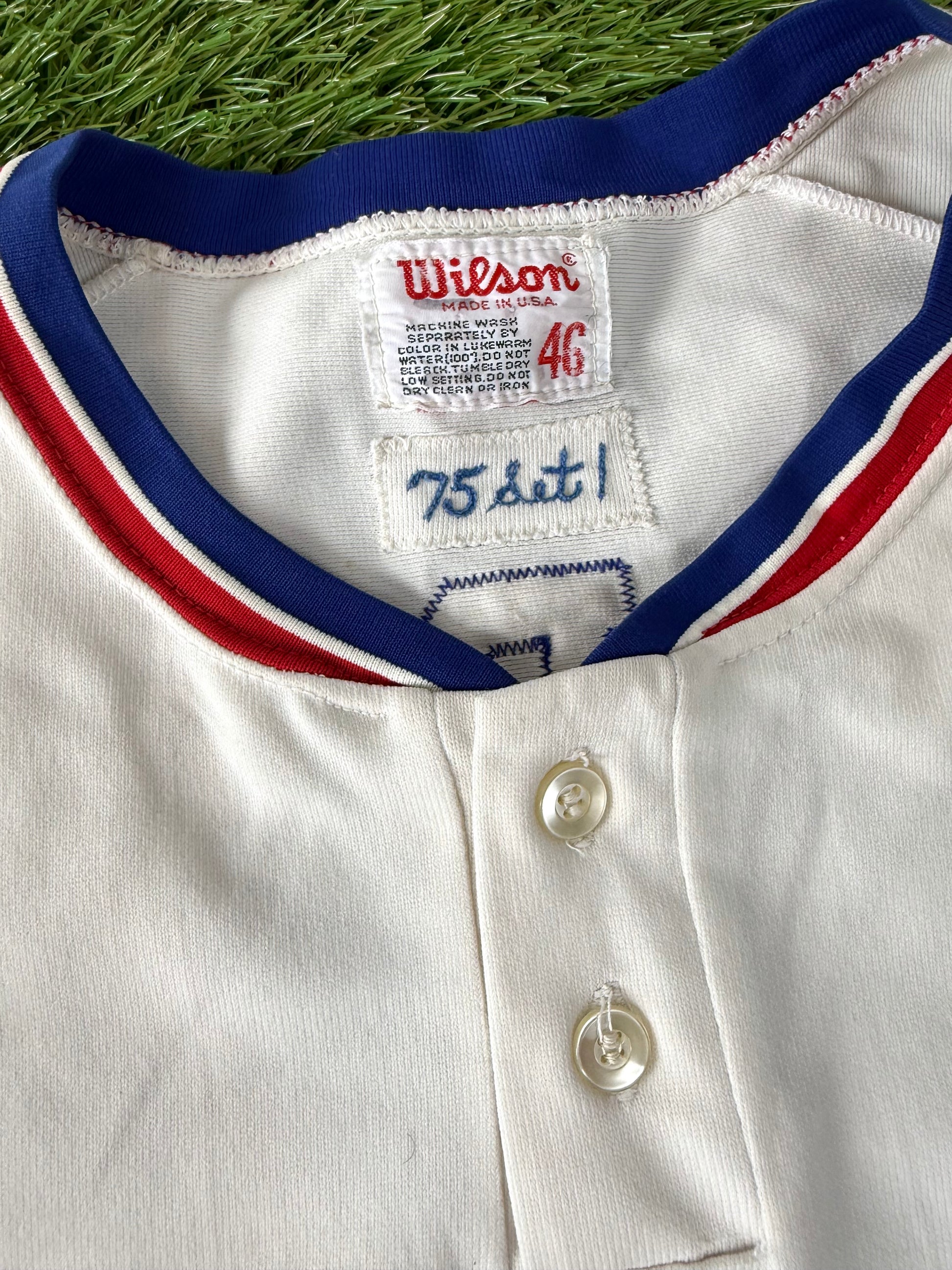 Condition: 8/10. Red twill is a bit faded on the name lettering. Faint “NELSEN” written in sharpie on the inside of the tail of the jersey.