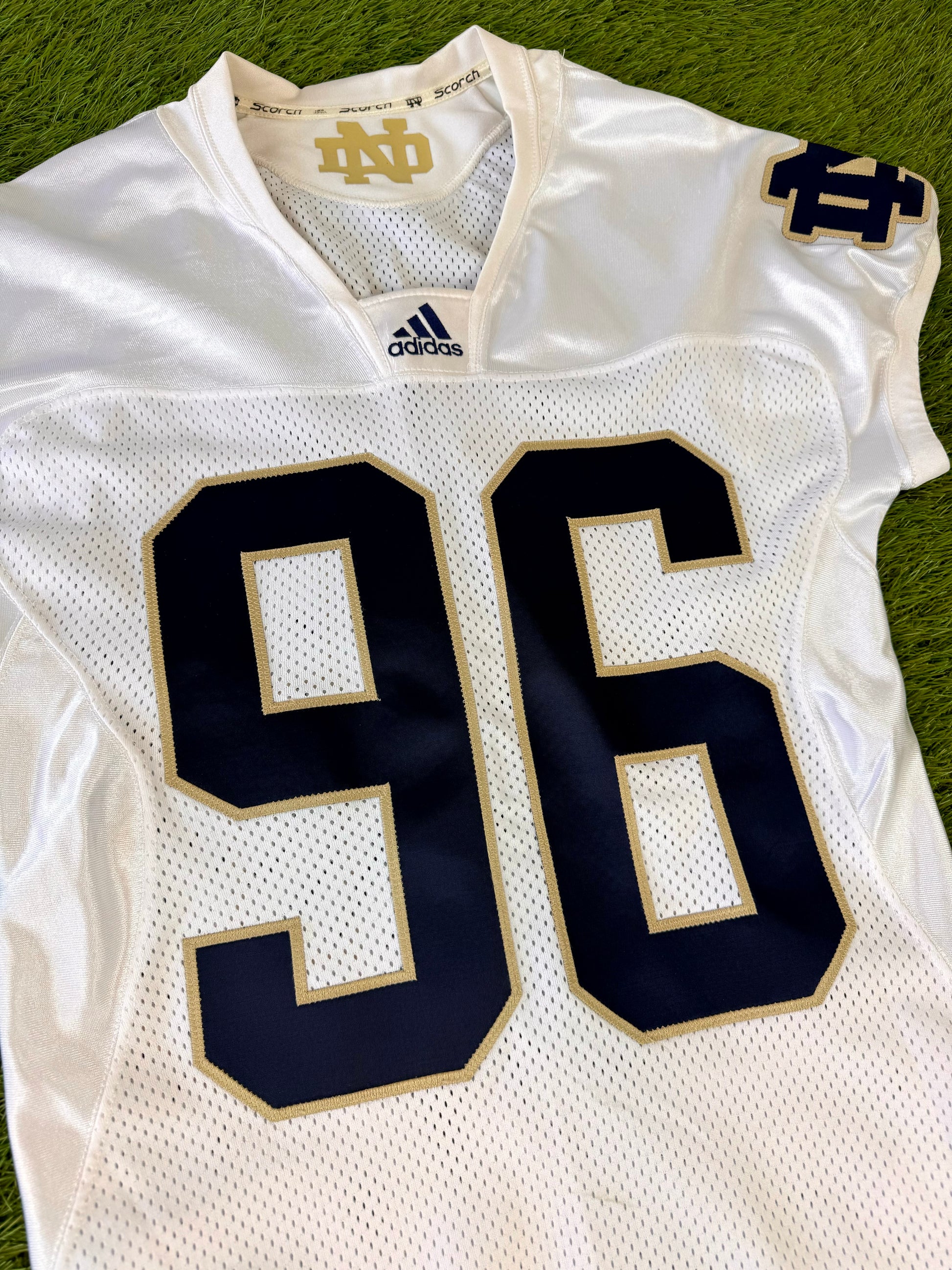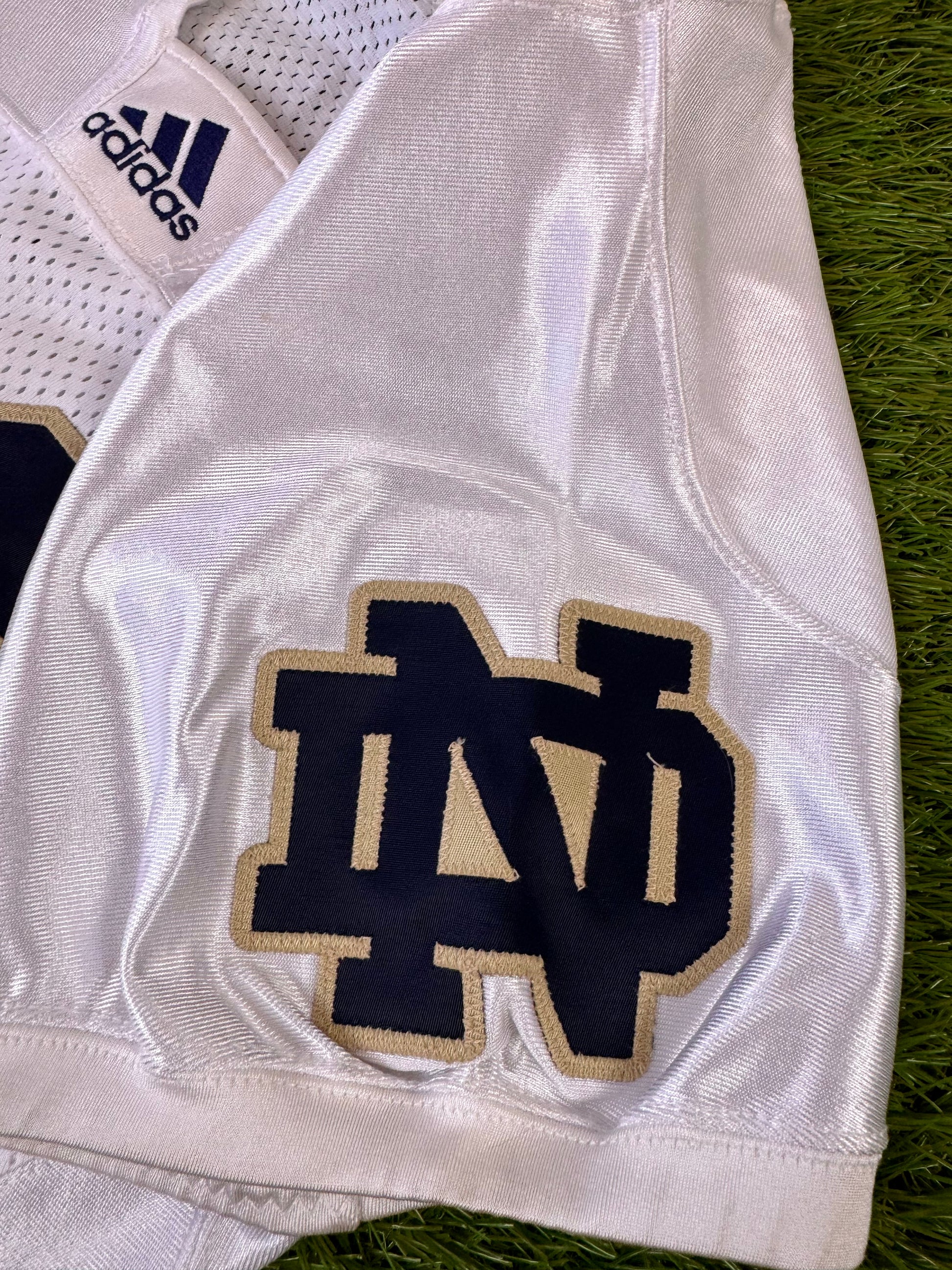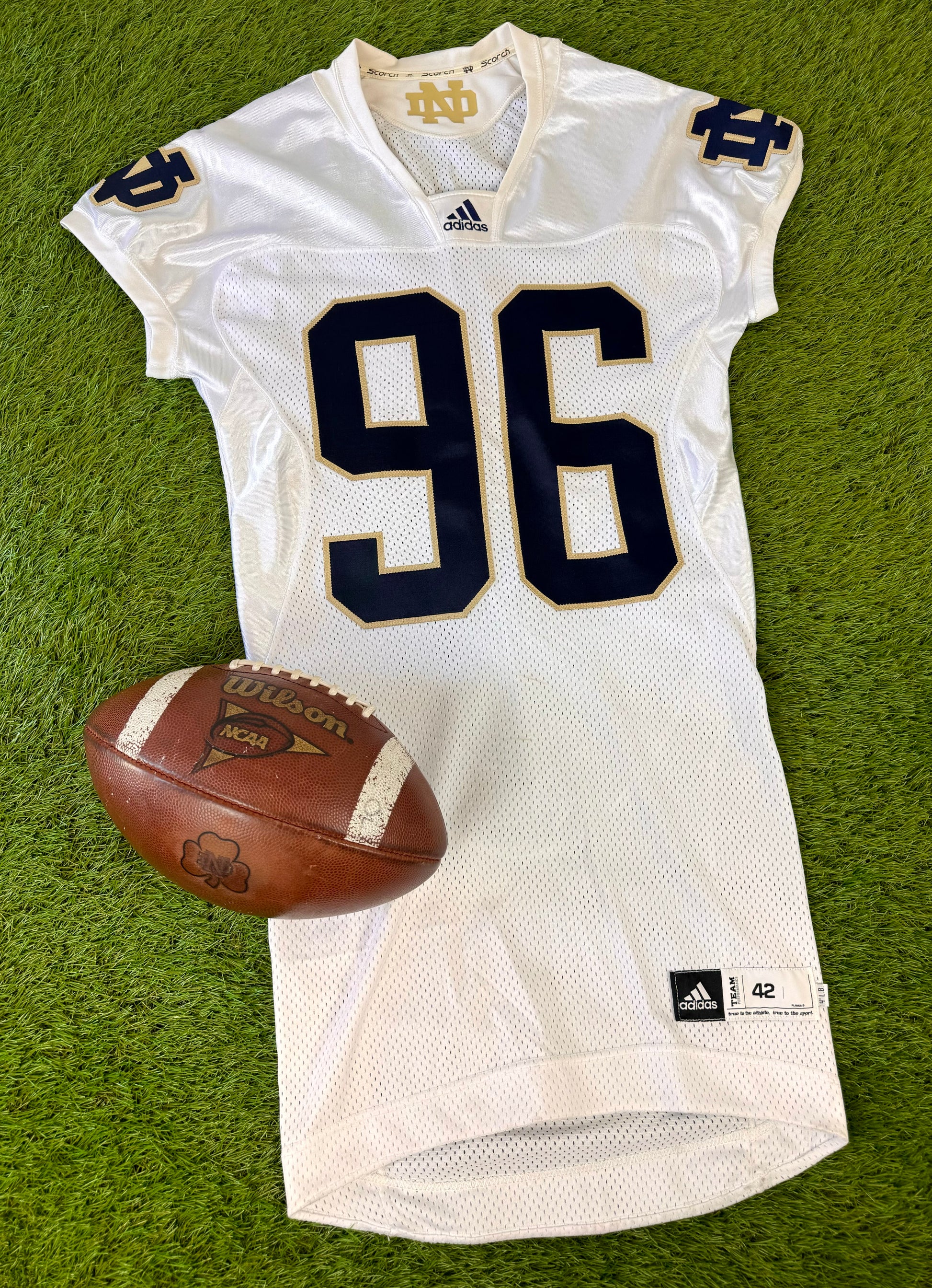 The 2010-11 Fighting Irish football team was on the cusp of greatness. The roster included Notre Dame legends Manti Te’o, Tommy Rees, and Theo Riddick, who all helped lead ND to the BCS national championship game in the 2012 season. This game jersey features reverse kiss cut numbers and ND sleeve logos that were brand new for the 2010 season, and they’ve stuck with the sleeve logos ever since. Before that, the Irish had numbers on the sleeves rather than the iconic ND logo. Get this piece of ND history for your collection before it’s gone for good!