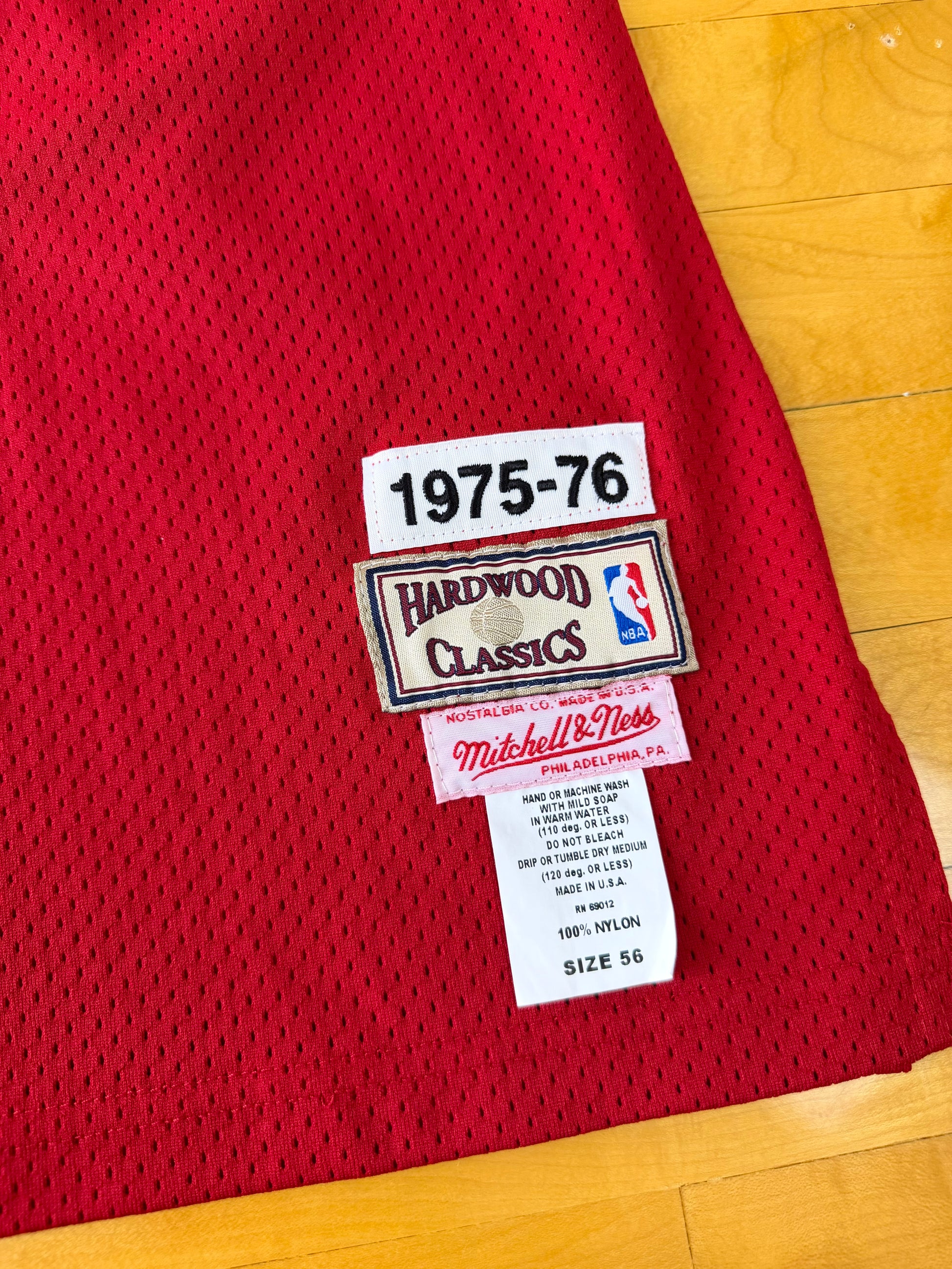 This early run Mitchell & Ness jersey is the highest quaility they ever made. Made in the USA from Union Labor, this heavy mesh jersey features era accurate screened on details. This jersey is tagged 1975-76, and while the ‘75-‘76 style was extremely similar, this run of jerseys is actually mistagged as the Bulls only wore this style from 1976-1979. Also, Gilmore didn’t become a Bull until the 1976-77 season. An interesting mistake by the usually very detail oriented company!