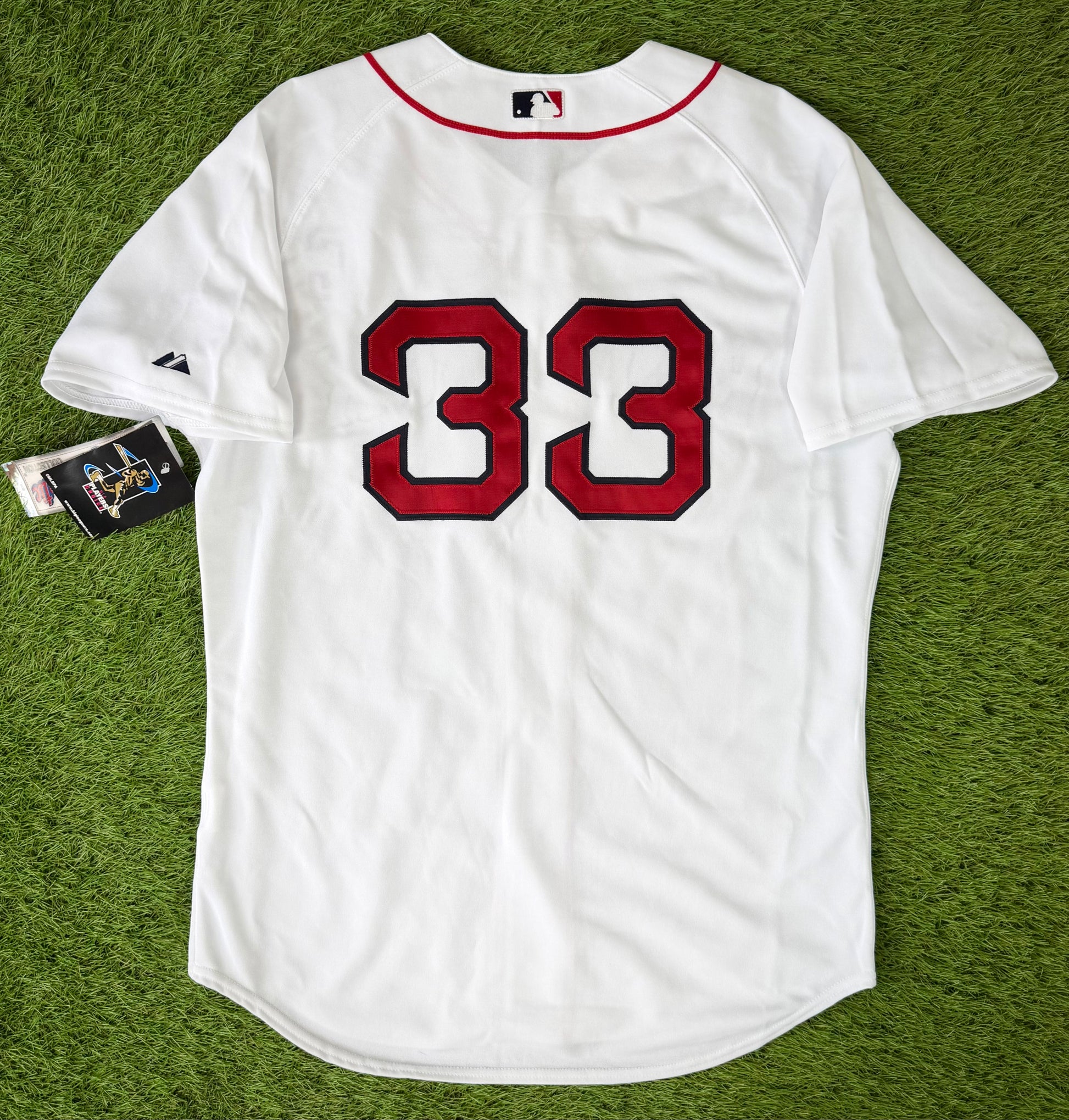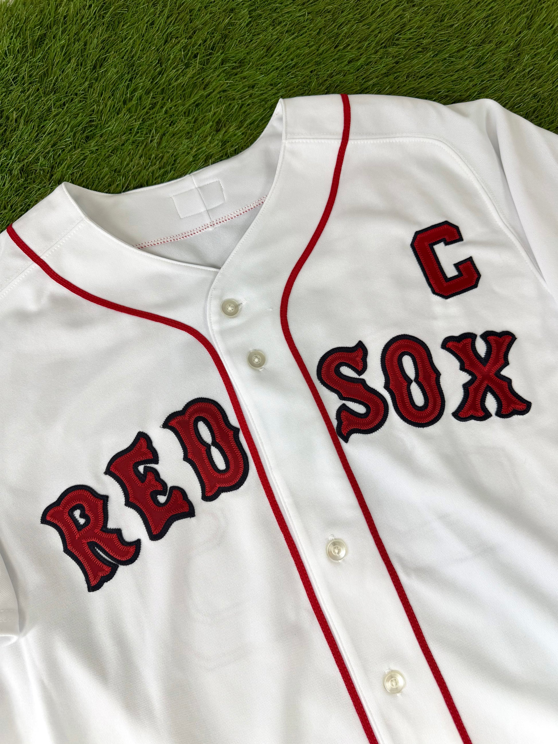 This authentic Red Sox home jersey features Jason Varitek’s signature “C”, a detail reserved for one of the most respected leaders in franchise history. Varitek earned the captain’s title in 2005 after years of commanding the pitching staff, setting the defensive tone, and anchoring Boston through its 2004 championship run.
